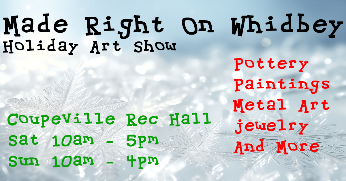 2 DAY EVENT!December 13th 10am - 5pm December 14th 10am - 4pmWe have great local Whidbey Artists that will have a beautiful display of art for you to choose from! Come down town Coupeville and enjoy the festivities, stop by for some great company, fabulous ART!Timothy Haslet (oil painter), Marcy Johnson (fiber and jewelry), Marcia Muchnick (pottery), David Somers (wood working, encaustic), Jandellyn and Johnathan Ward (metal art), Robert Pennington (photography), Regina Kastler (woven baskets), Pamela Good (Watercolor, Oils) and Mary Ellen O'Connor (metalsmith)We hope you will make us a part of your holiday tradition this year!