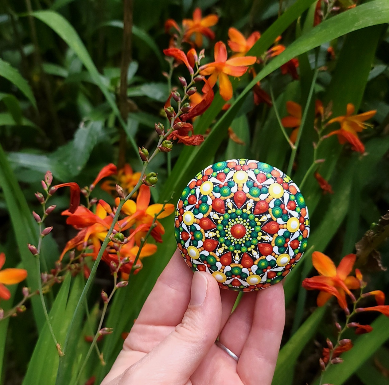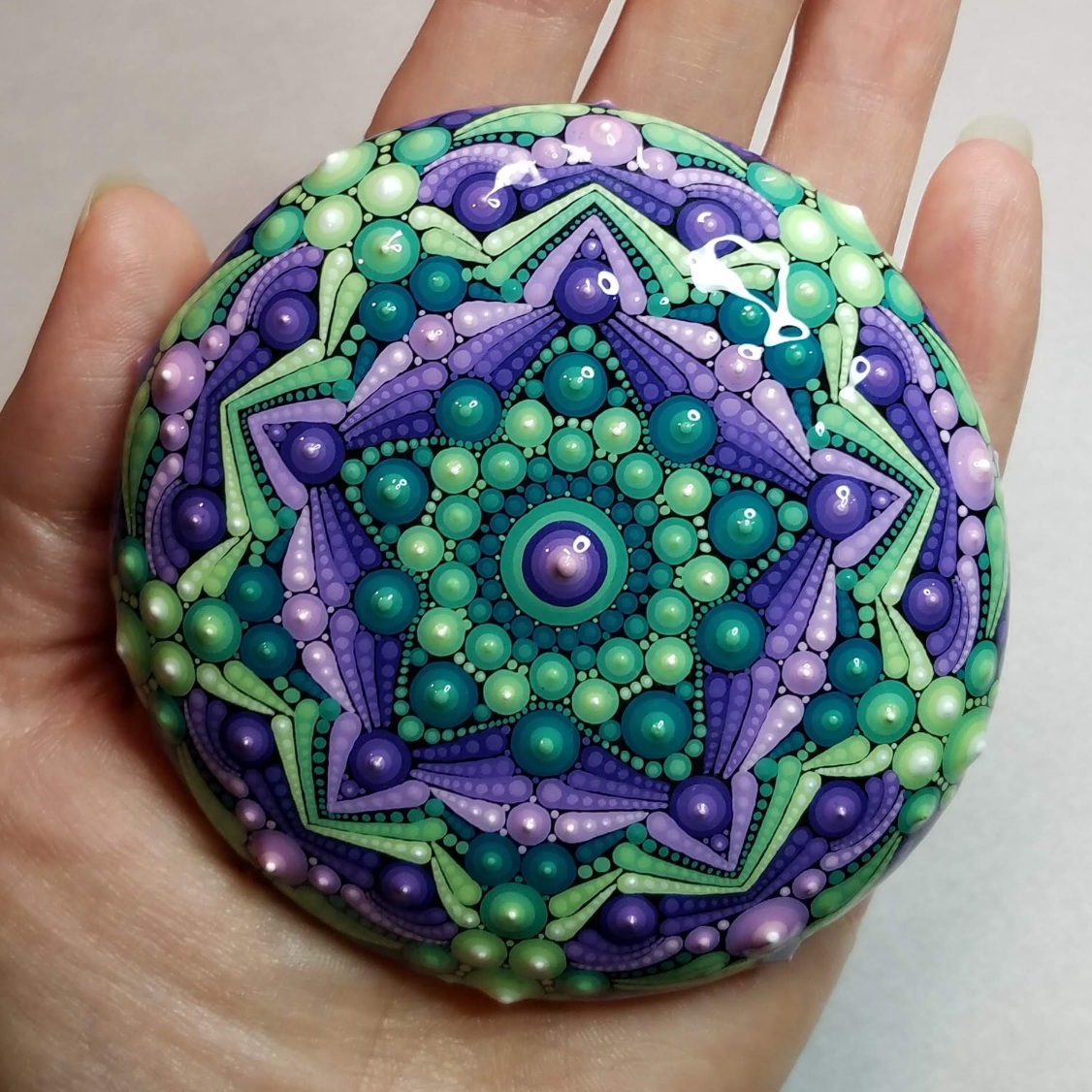 She started painting mandalas in 2017 and began selling her artwork on Etsy after a year of practicing painting dots on beach rocks. Sales went well and her mandalas have been purchased by people all over America.