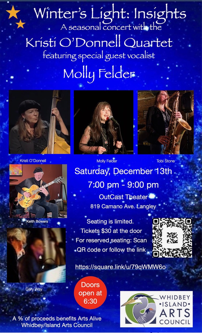 The show features the Kristi O’Donnell Quartet with Friends: featuring Molly Felder -vocals, Keith Bowers – guitar, Tobi Stone – reeds, Gary Way - keyboard, Roger Bennett - percussion and Kristi O’Donnell – double bass.