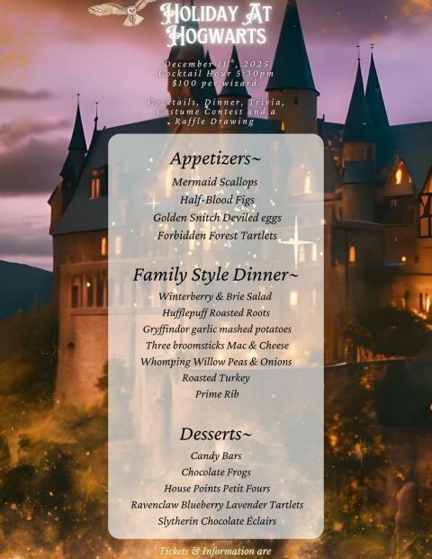Step into the magic this holiday season at our Holiday at Hogwarts Dinner!