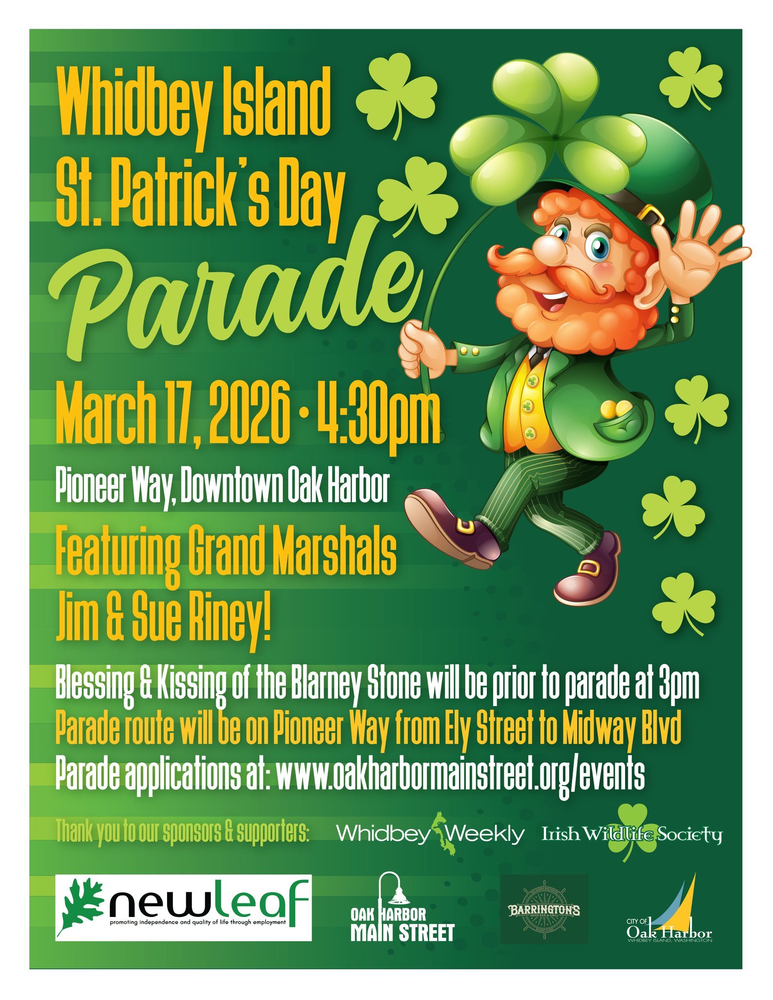 St Patricks Day Parade in Oak Harbor Saturday Mar 17, at 4:30pm