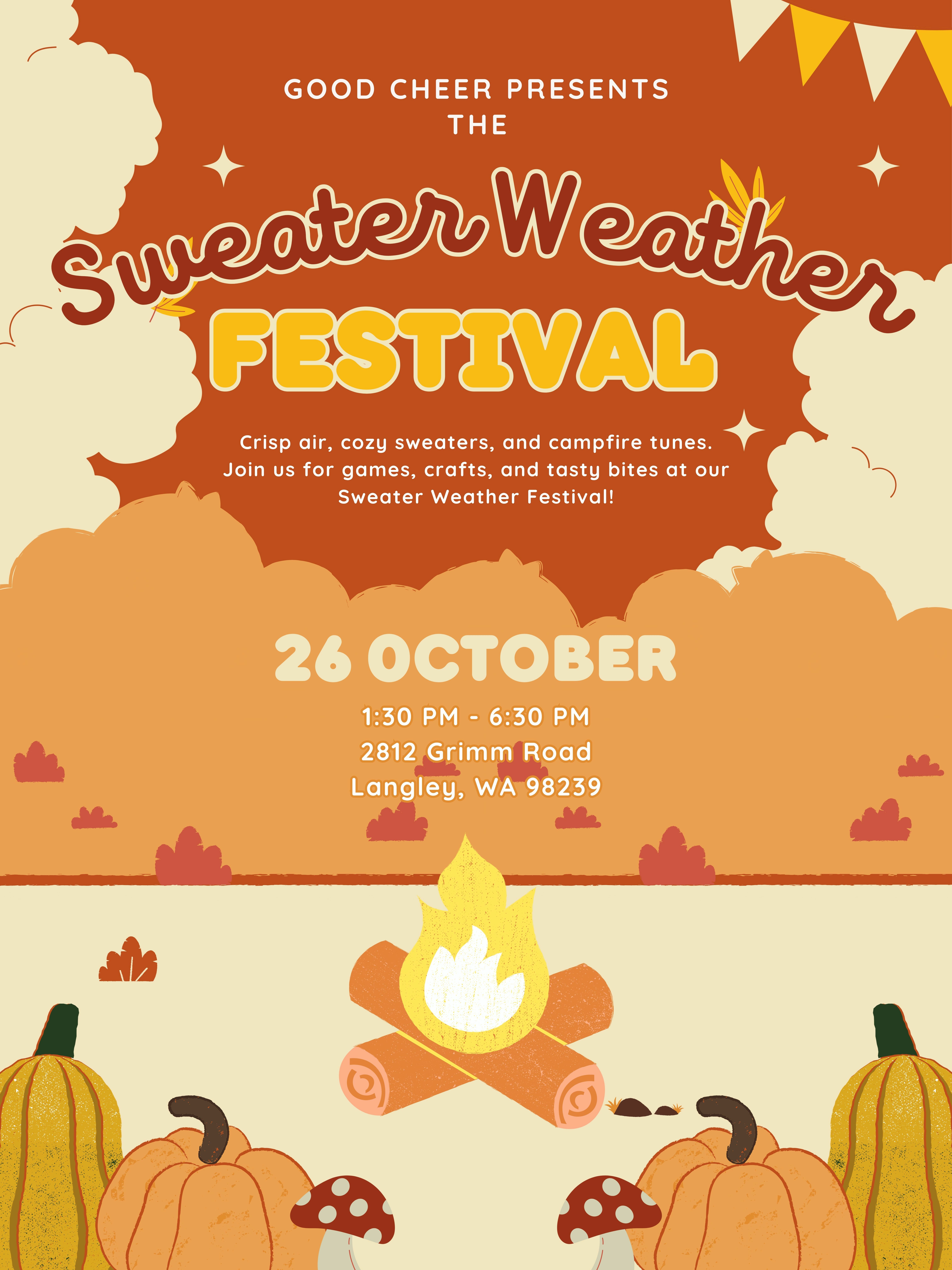 Crisp air, cozy sweaters, and campfire tunes. Join us for games, crafts, and tasty bites at our Sweater Weather Festival!