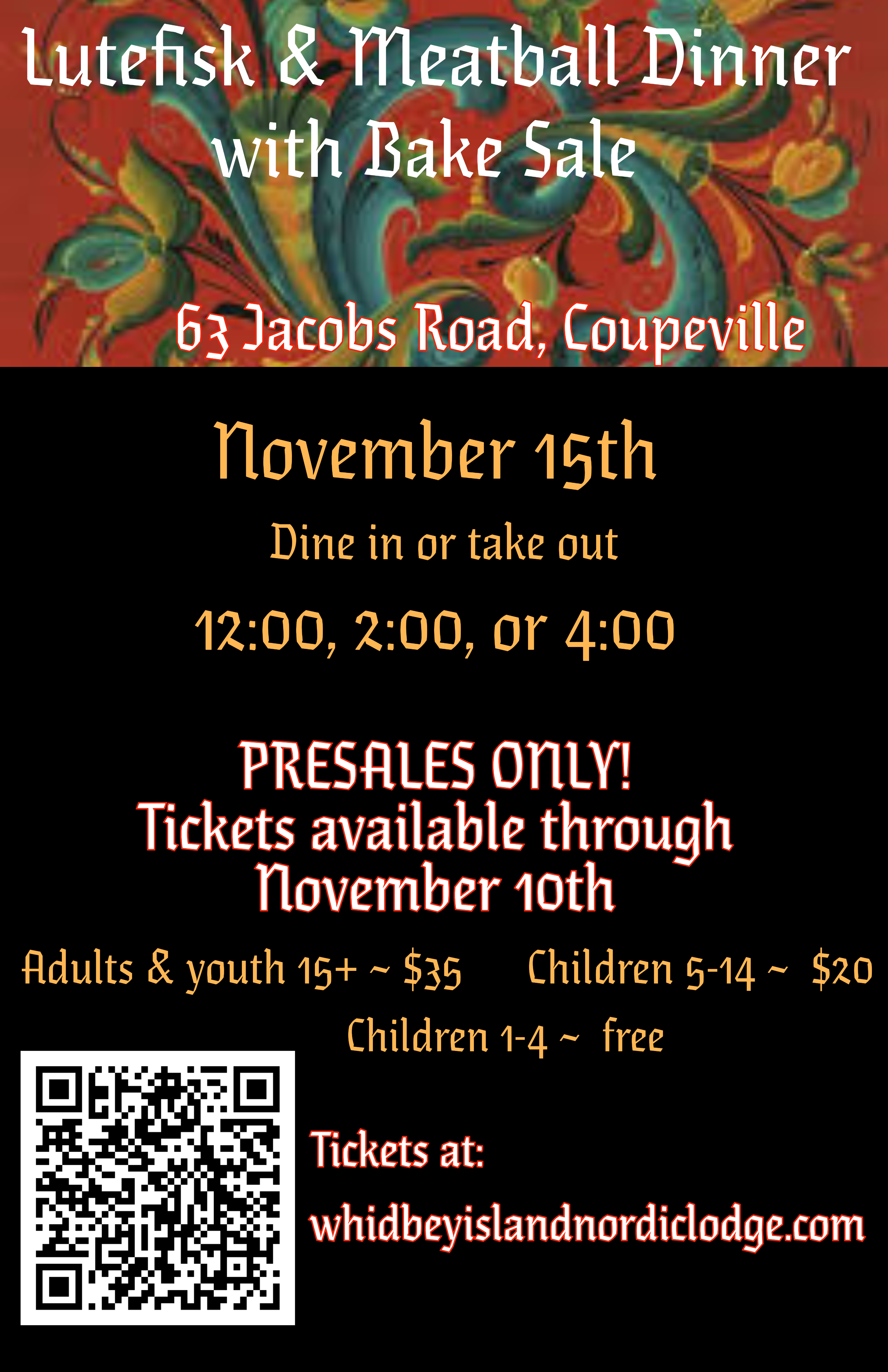 Full Norwegian / Scandinavian meal with all the trimmings! Great food and even better company! Three seating times to choose from (12:00, 2:00 or 4:00) or order for takeout! Bring your family and friends!