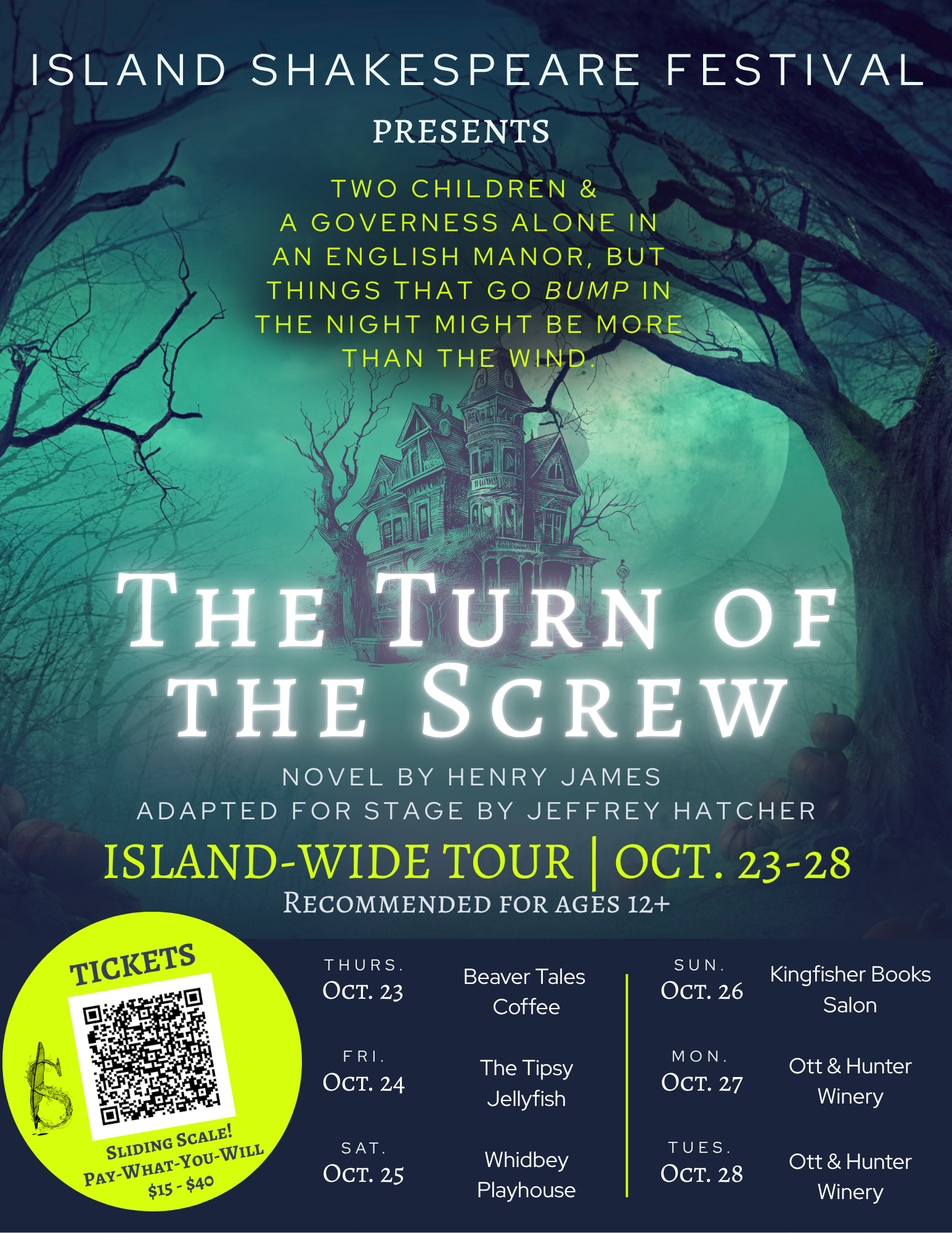 Island Shakes presents "The Turn of the Screw" by Henry James and adapted for the stage by Jeffrey Hatcher at various locations in Coupeville, Oak Harbor and Langley Oct. 23-28. Running time: 1 hour 35 minutes