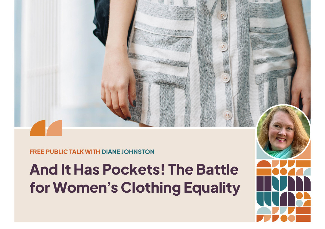 Join costume designer Diane Johnston to dig into the pockets of the past, tracing the history of the humble pocket to determine if the battle for equality may still be decided by a few inches of extremely influential fabric.