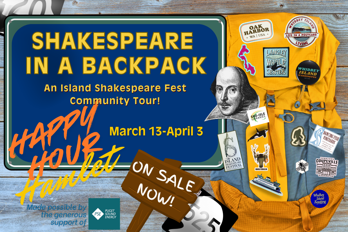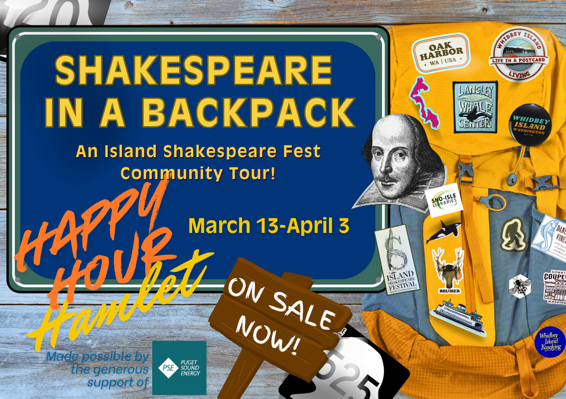 Between March 13-April 3 in Clinton, Langley, Freeland, Coupeville and Oak Harbor, you can see Happy Hour Hamlet at a library, playhouse, pub or wine bar near you!